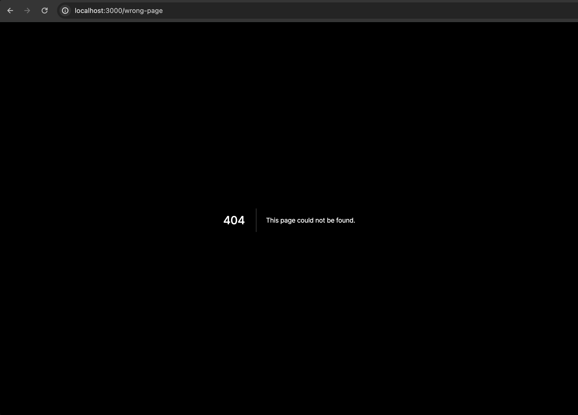 nextJS에서는 잘못된 링크로 접속하면 아래 사진처럼 기본 404 페이지가 뜨는 것을 확인할 수 있다.