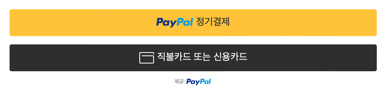 그런데 버튼을 추가하고 보니 버튼 아래에 계속 제공: PayPal 이 거슬리게 떠있었다. 디자인을 위해서 해당 태그는 없애야 했다.