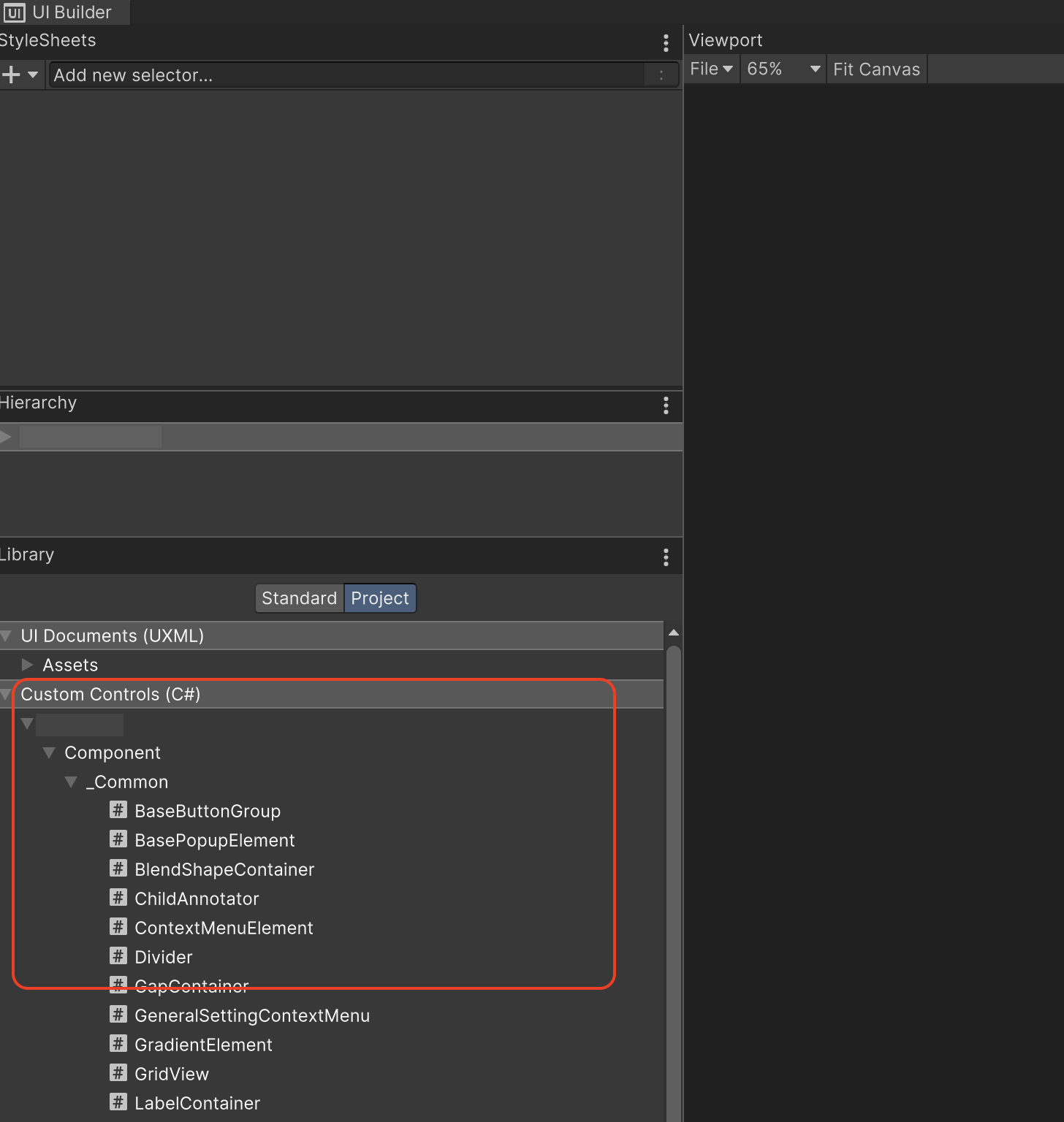 스크립트로 VisualElement나 BaseField 등을 상속한 Custom Control를 작성했을 때, 해당 요소가 Library 창의 Project 탭에 안 뜨는 경우가 있다.