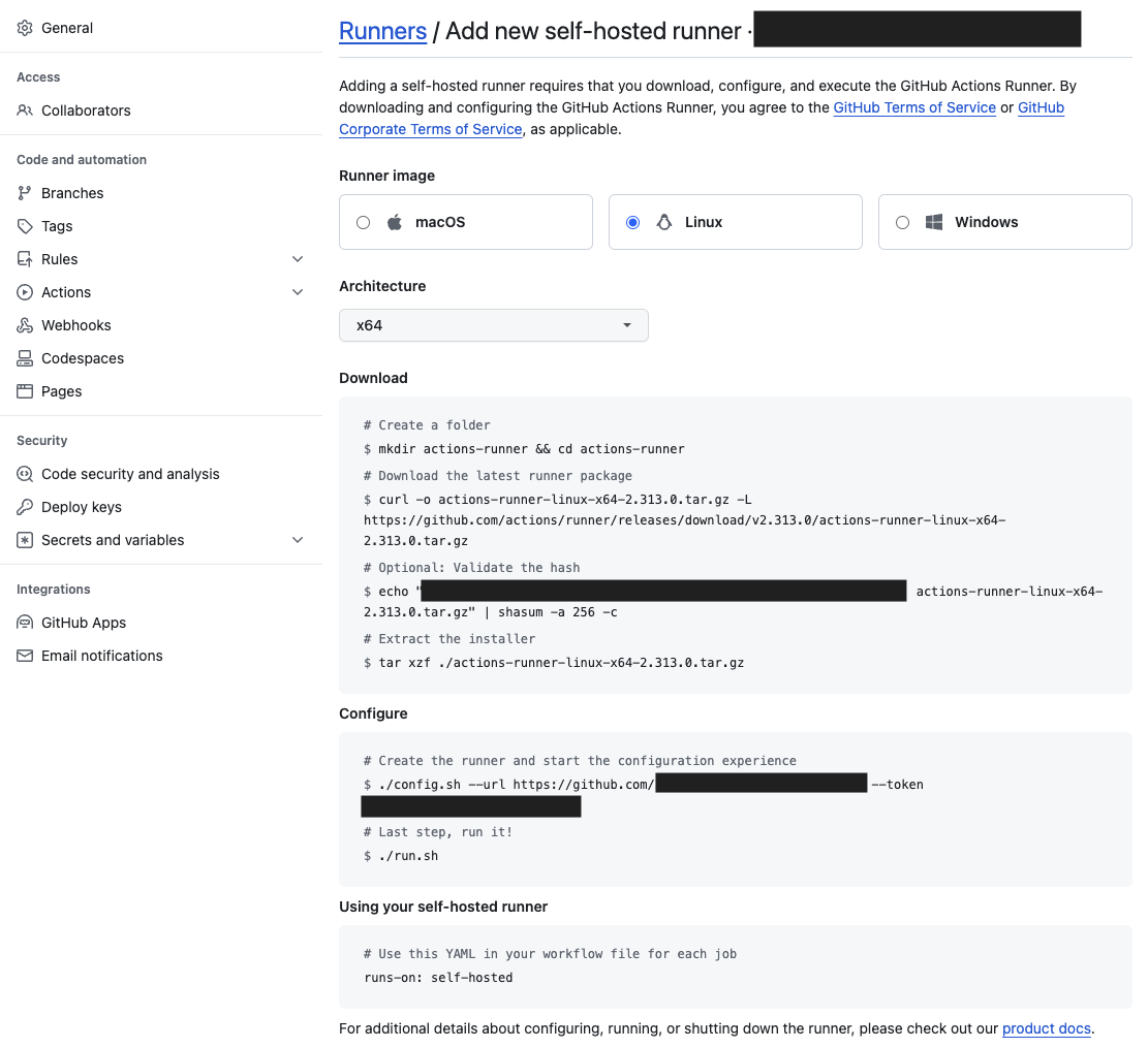 $ tar xzf ./actions-runner-linux-x64-2.313.0.tar.gz