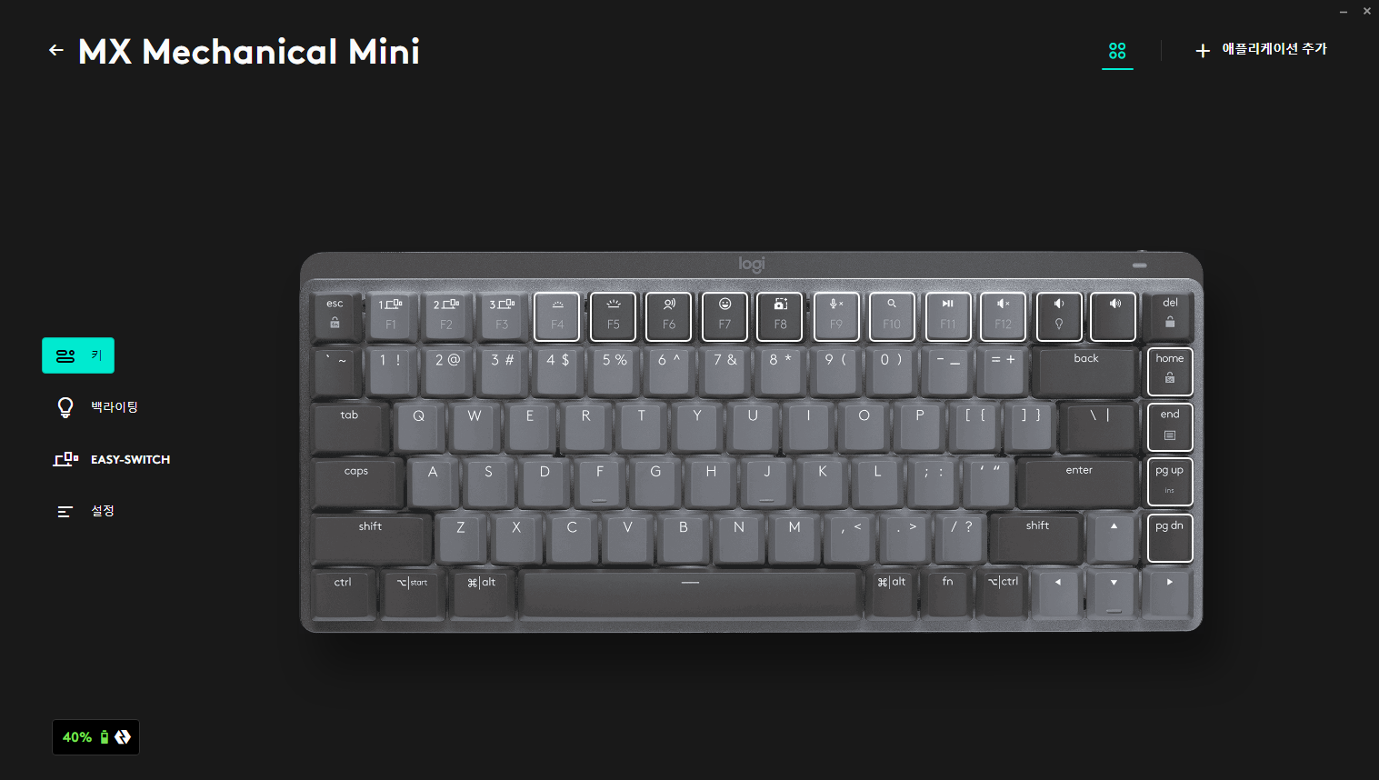 추가로 내가 이 상품들을 선택한 이유 중 하나는 바로 Logi Options+ 앱을 이용해서 마우스 버튼 및 키보드 키를 커스터마이징 가능하다는 점이었다.