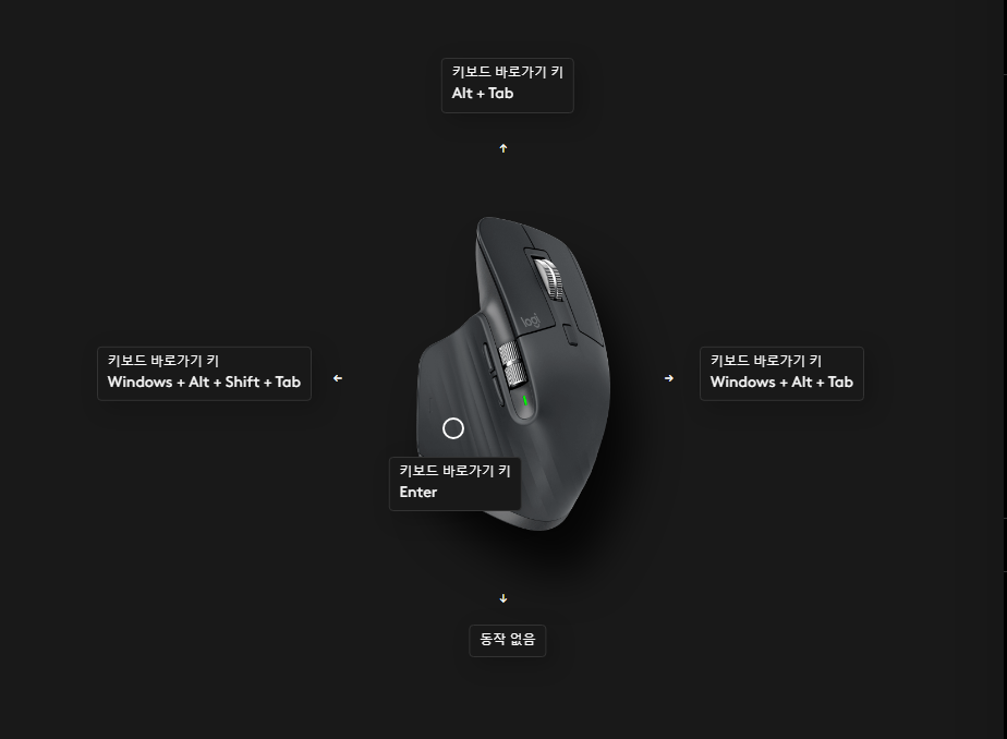 Logi Options+에서 마우스에 키보드 바로가기 키를 설정하여 아래와 같이 입력해주면 된다.